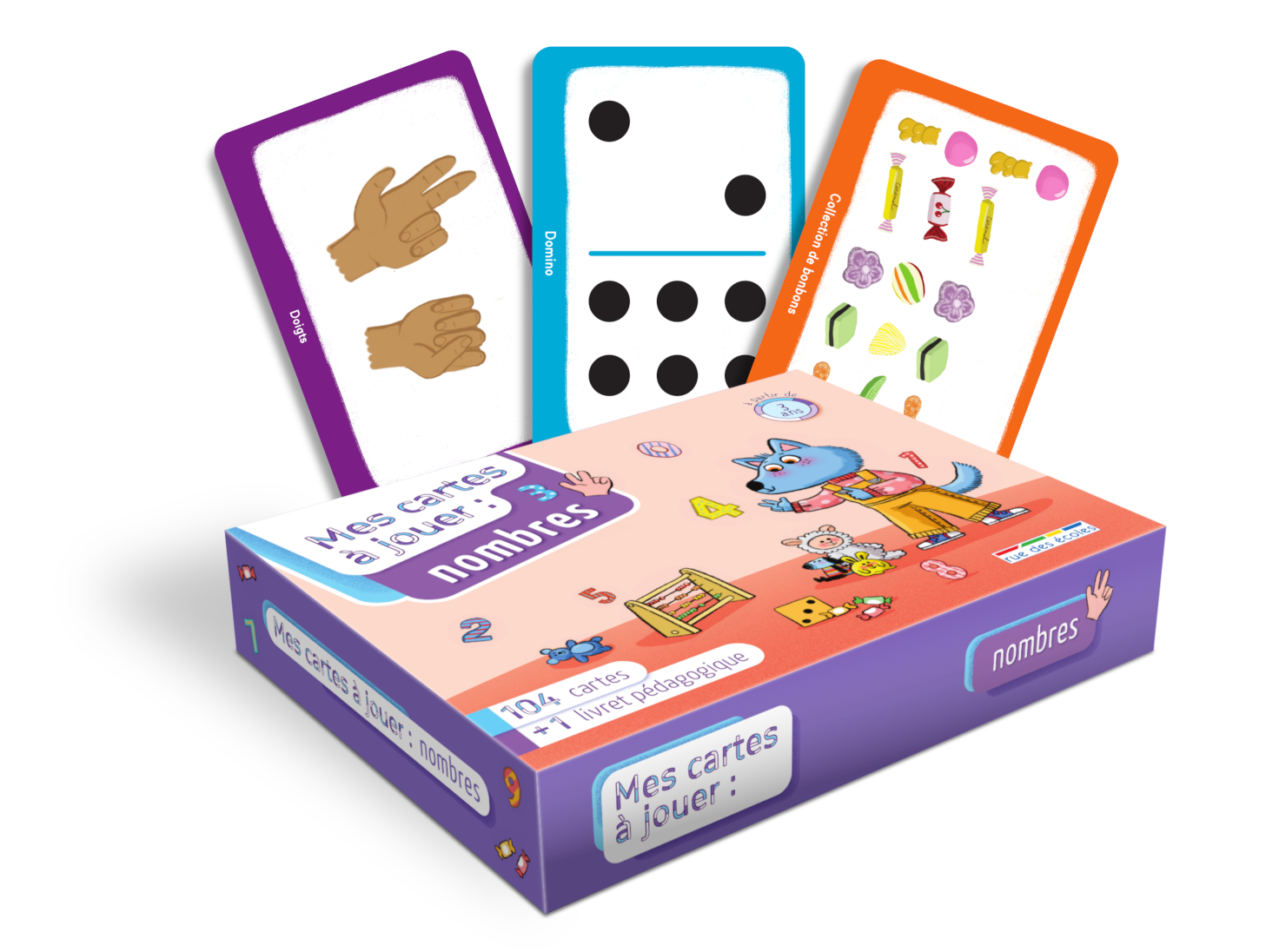 Un jeu de cartes pour découvrir les nombres de 1 à 20, à travers plusieurs variantes : le solitaire, le nombre manquant, les paires et bien d'autres.12 activités pour découvrir les nombres de 1 à 20.La boîte comprend :1 livret pédagogique de 16 pages ;104 cartes recto verso ;Au recto des cartes, se trouve un nombre représenté d'une des cinq manières suivantes : nombres en chiffres et en lettres, doigts, collections de bonbons, domino, escalier. Au verso sont représentées les cartes « unité », symbolisées par un bonbon ;Plusieurs façons de jouer : le solitaire, le nombre manquant, les paires, le memory, le Mistigri, la bataille, le loto, construire une collection, calculer la somme, les dominos…De 1 à 4 joueurs, à partir de 3 ansCe jeu, à partager en famille, en classe ou avec ses amis, entraîne les enfants à mémoriser la suite numérique de 1 à 20 et favorise l'acquisition des concepts de quantité et de dénombrement de manière ludique, complétant ainsi l'apprentissage qui en est fait à l'école.