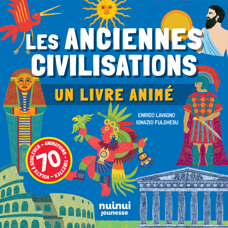 Un voyage au cœur des civilisations anciennes ! Un livre qui invite les jeunes lecteurs à la découverte du monde antique à travers un multitude d'informations, d'anecdotes, 70 animations, volets à soulever et tirettes pour stimuler la curiosité. Grâce à des illustrations riches et colorées, ils explorent les grandes civilisations du passé telles que Égyptiens, Sumériens, Assyriens et Babyloniens, Grecs, Romains, Mayas, Aztèques, etc., et approfondissent tout en s'amusant. Sais-tu pourquoi Toutânkhamon est aussi célèbre ? Et savais-tu que les peuples préhistoriques gravaient de véritables " histoires " sur les parois rocheuses ? Ces questions, et bien d'autres, trouvent une réponse dans cet ouvrage !