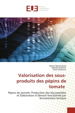 Les pépins de tomates, le sous-produit majeur de l'industrie de transformation des tomates, représentent une source riche en lipides et en protéines. L'objectif du travail est de : (i) Valoriser les deux fractions lipidique et protéique des pépins de tomate par extraction; (ii) Exploiter les propriétés fonctionnelles de l'huile des pépins de tomate dans l'amélioration de la qualité nutritionnelle des tomates séchées et (iii) Produire des aliments et des métabolites à valeur ajoutée plus élevée à base de la fraction protéique des pépins de tomate. Une valorisation des propriétés fonctionnelles de l'huile des pépins de tomate extraite par presse a été réalisée en incorporant trois différentes doses à savoir 100, 150 et 200 ppm d'huile dans les quartiers de tomates destinés au séchage. Une valorisation de la fraction protéique a été également effectuée par fermentation lactique afin de produire des starters lactiques. Une évolution de la concentration cellulaire, de la consommation des substrats et de la production des métabolites ont été simulé mathématiquement à l'aide de divers modèles mathématiques primaire et secondaire.