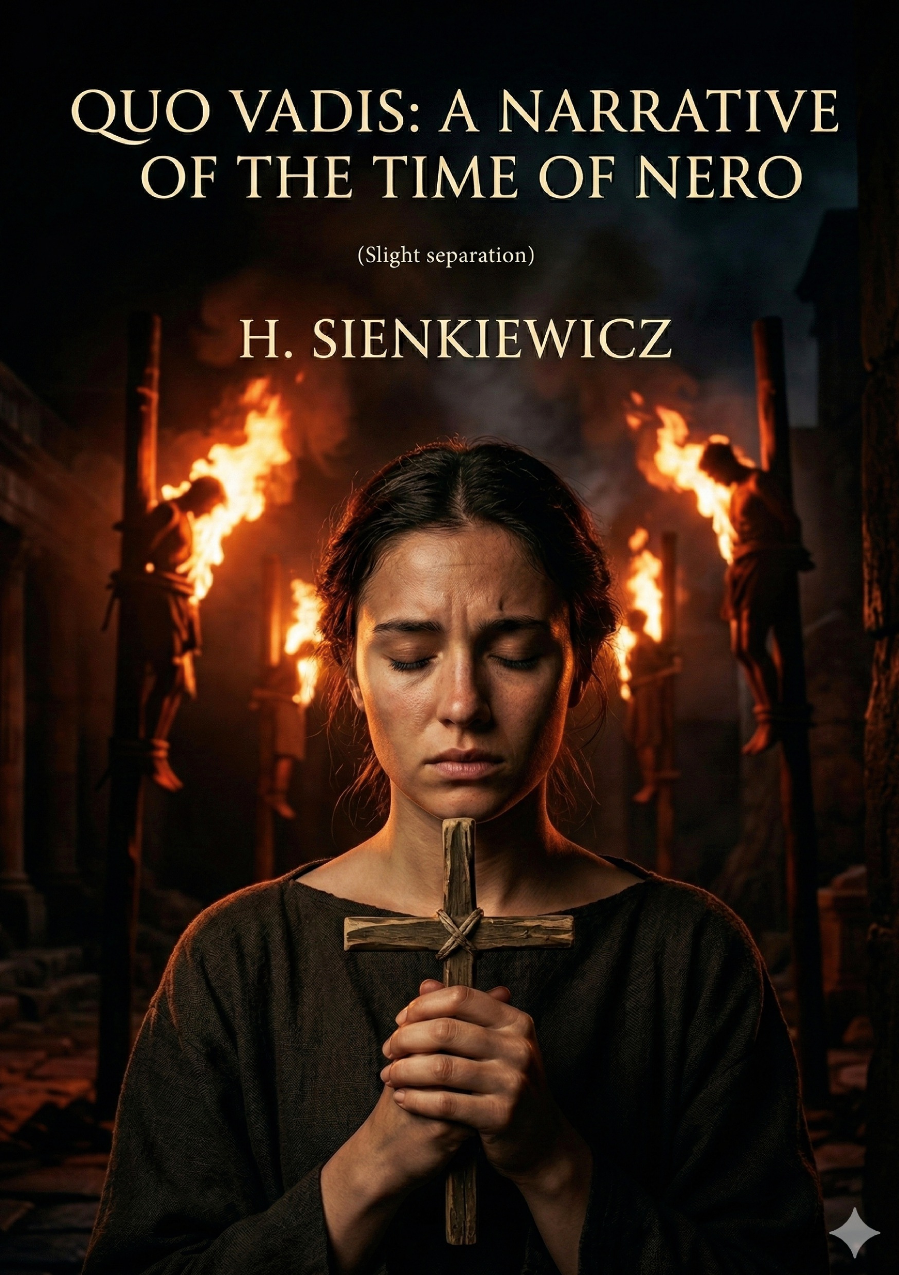Quo Vadis: A Narrative of the Time of Nero was first published in Polish as Quo vadis. Powiesc z czasów Nerona. Among Henryk Sienkiewicz's inspirations was the painting Nero's Torches (Pochodnie Nerona) by fellow Pole Henryk Siemiradzki; the painting, which depicts cruel persecution of Christians, serves as the cover art for this ebook edition. Sienkiewicz incorporates extensive historical detail into the plot, and notable historical figures serve as prominent characters, including the apostles Simon Peter and Paul of Tarsus, Gaius Petronius Arbiter, Ofonius Tigellinus, and the infamous Nero himself. Sienkiewicz used the historical basis of the novel as an opportunity to describe in detail the lives of the citizenry under Nero's cruel and erratic rule.Sienkiewicz was awarded the 1905 Nobel Prize in Literature in part for his authorship of Quo Vadis. The book was exceedingly popular both domestically and internationally: it was translated into more than 50 languages, sold 800,000 copies in the U.S. within a period of eighteenth months, and was the best selling book of 1900 in France.The plot of Quo Vadis follows the love story of Marcus Vinicius and Lygia. He is a young, charming, up-and-coming Roman patrician; she is a high-ranking hostage, a former princess of a country conquered by Rome. Vinicius's immediate infatuation with Lygia is complicated by her devout Christianity, a faith barely tolerated in Rome of the time. As the painting that inspired the novel foreshadows, Rome burns in a great fire, and Christians receive the blame. The subsequent persecution of the Christians in Rome serves as the main obstacle between the two lovers.Sienkiewicz portrays a pro-Christian narrative throughout the book, with the apostles Peter and Paul serving as spiritual mentors to both Vinicius and Lygia. The novel's title translates to "Where are you going, Lord?", a quote from the apocryphal Christian text the Acts of Peter, which depicts Peter's death. The text describes how while fleeing Rome, Peter asks a vision of Jesus the titular question, to which Jesus replies that he is returning to Rome to lead the Christians since Peter, their leader, is deserting them. Peter then realizes he must turn back and remain with his people, despite the cost. Quo Vadis depicts this exchange, along with Paul's fate and the deaths of Nero and Petronius, Vinicius's wise and worldly uncle and mentor. Sienkiewicz contrasts Petronius's and Nero's hedonism with Vinicius's and Lygia's journey to a deeper faith in their God, and with Peter and Paul's faithful martyrdom, to great effect. As such, the novel is not just a love story, but also a thoughtful reflection on how one's way of living affects how they see death.
